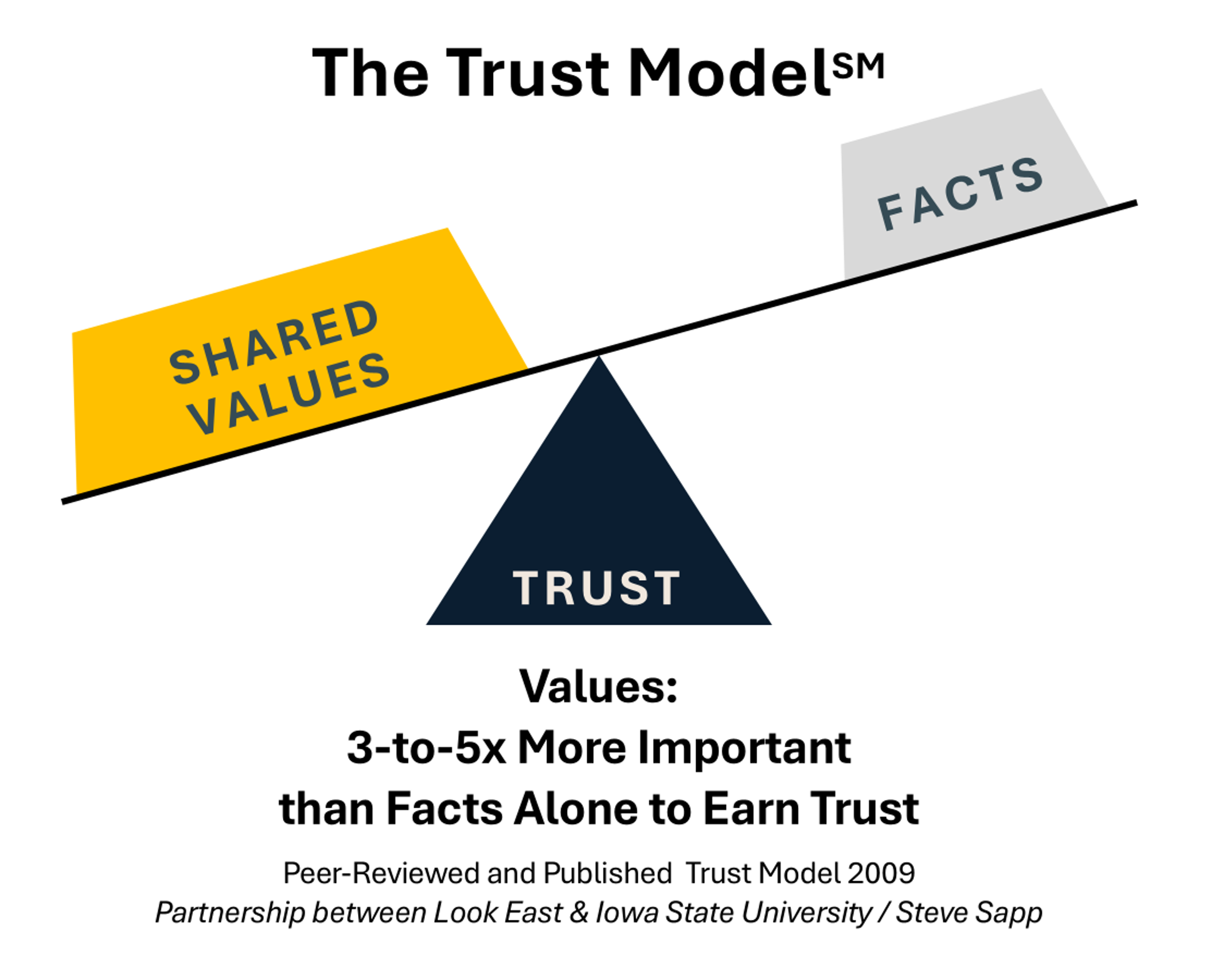 Much of our work is grounded in our peer-reviewed and published Trust ModelSM, which shows that shared values are three to five times more influential in earning trust than facts alone. That insight has shaped how we approach everything from consumer research to messaging, engagement strategies, and storytelling. When people feel aligned on values, information is more likely to be considered.